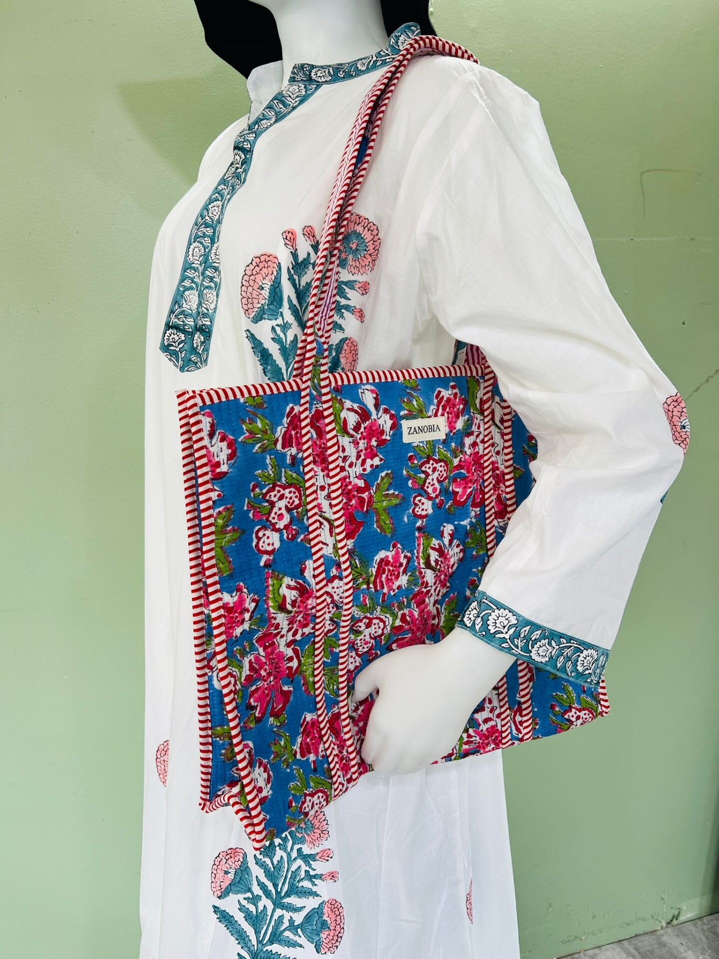 Whether you’re browsing your local market, gifting your bridal party, or heading to the beach, this one-of-a-kind tote adds charm, heritage, and functionality to every moment. Gift for new mom, mom diaper tote bag, new mom essentials, baby shower gift, handmade baby bag, ecofriendly mom gift, washable tote for mom, mom travel bag, reversible cotton tote, artisan diaper bag, Indian quilted tote, Zanobia handmade bag