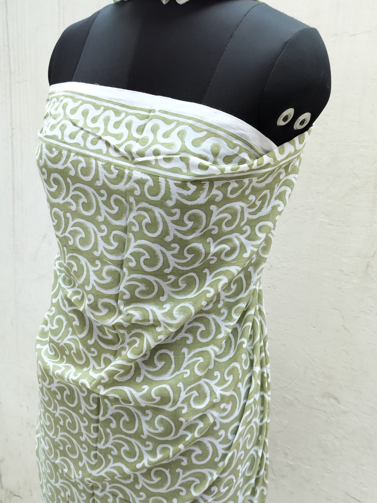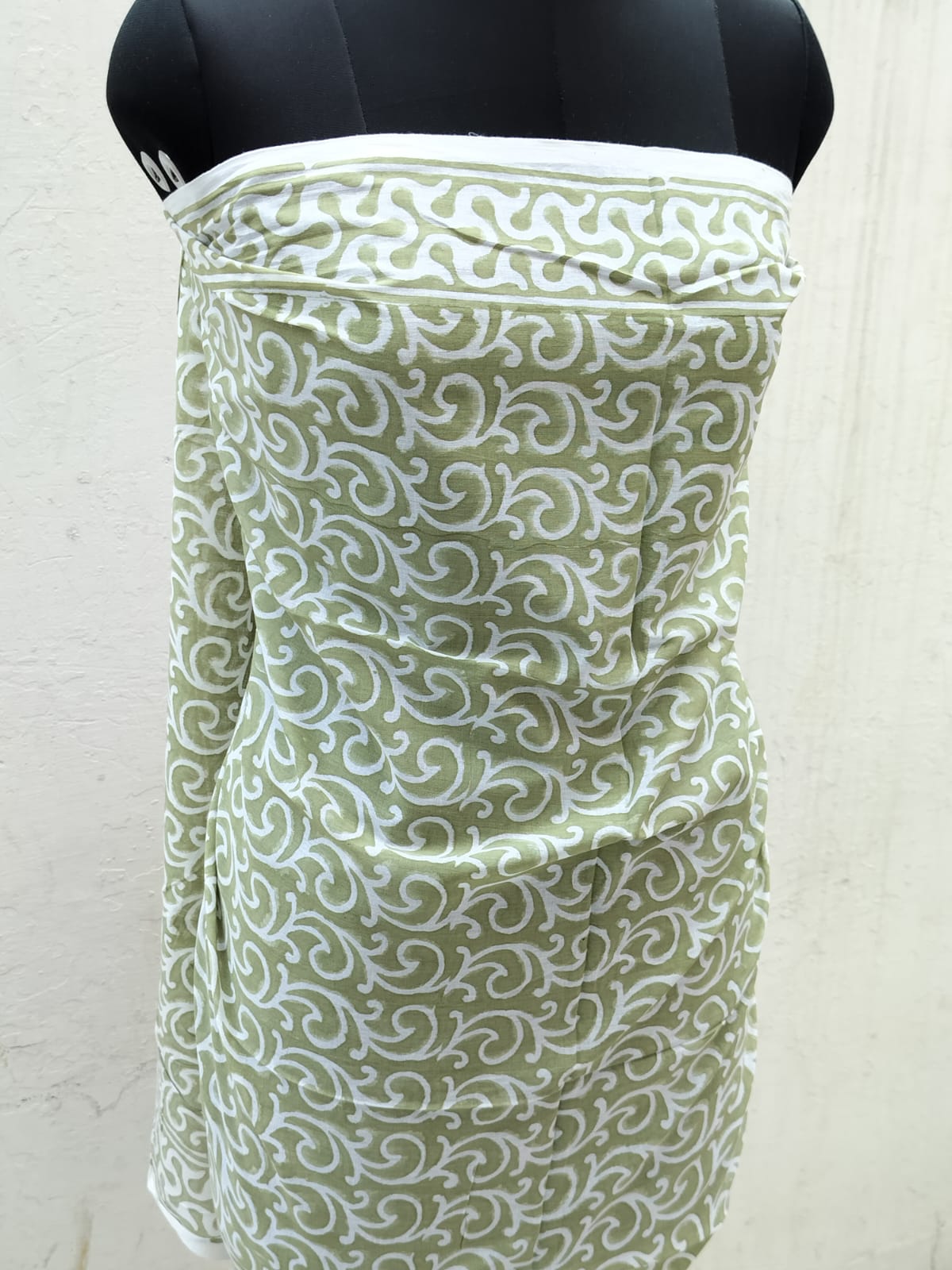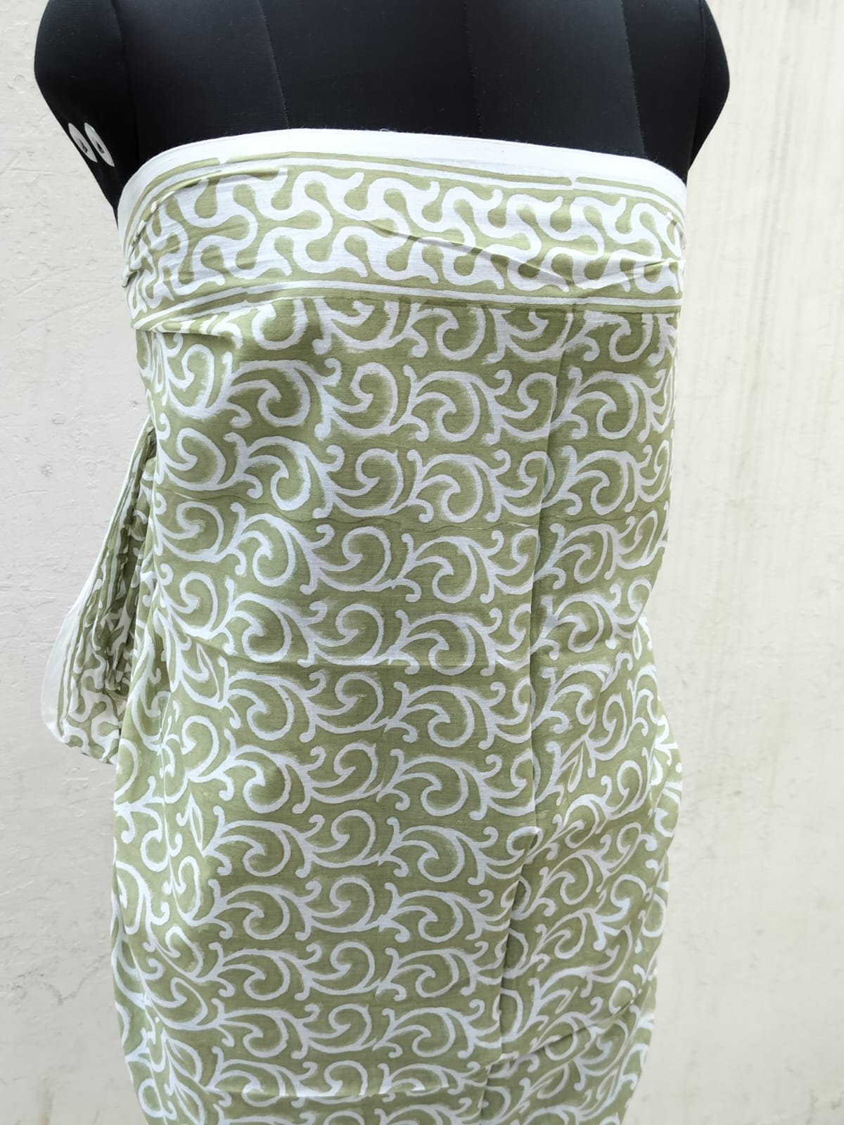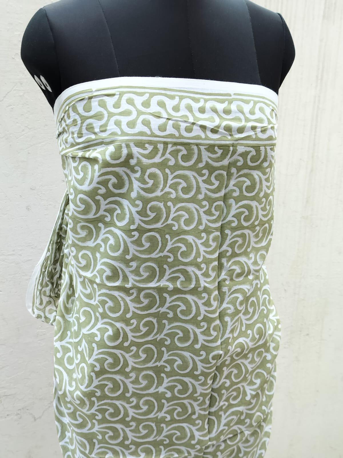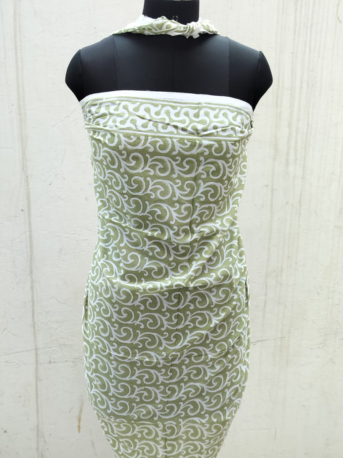 Indian Hand Made Block Printed Pareo, Beach Wear Scarf Hip Wrap Pareo C Green-Color Nice Floral Print Pure Cotton# Sarong