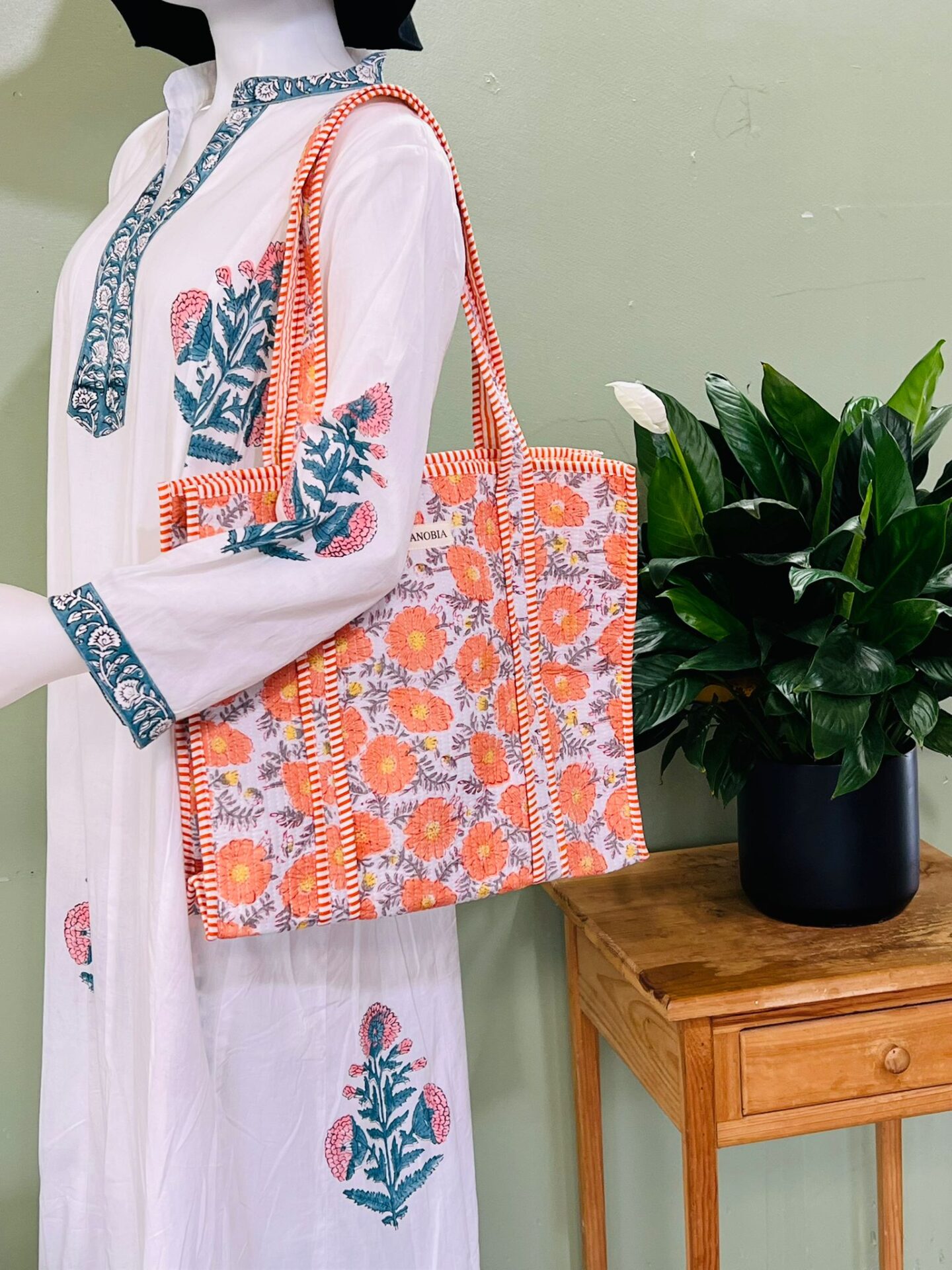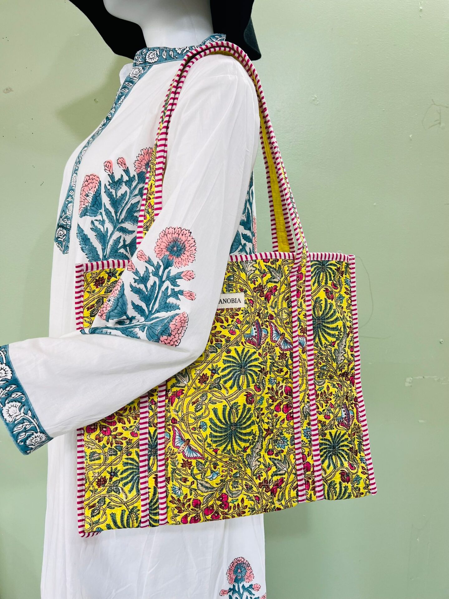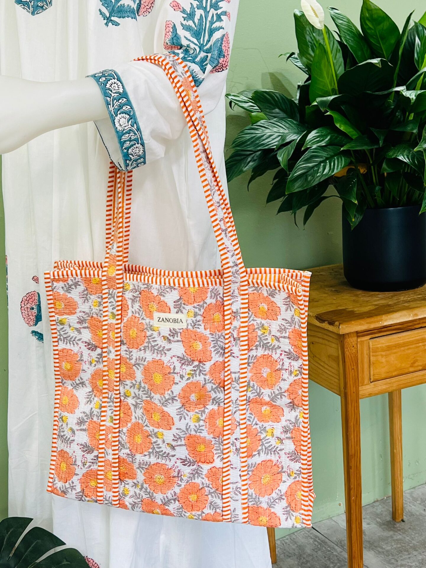 Quilted Cotton Tote Bag – Eco-Friendly, Block Print Shoulder Bag for Travel, Shopping & Bridesmaid Gifts
